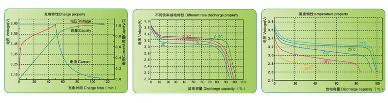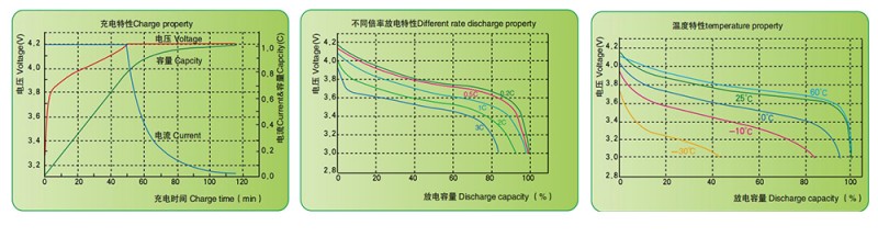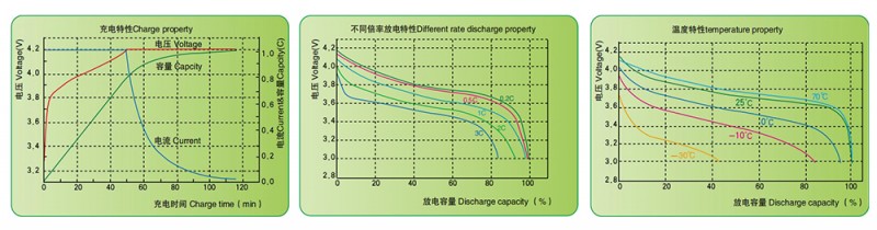 * 采用三元材料作為正極材料,倍率放電性能優越,循環壽命800-1000次,剩余容量>額定容量的80%;