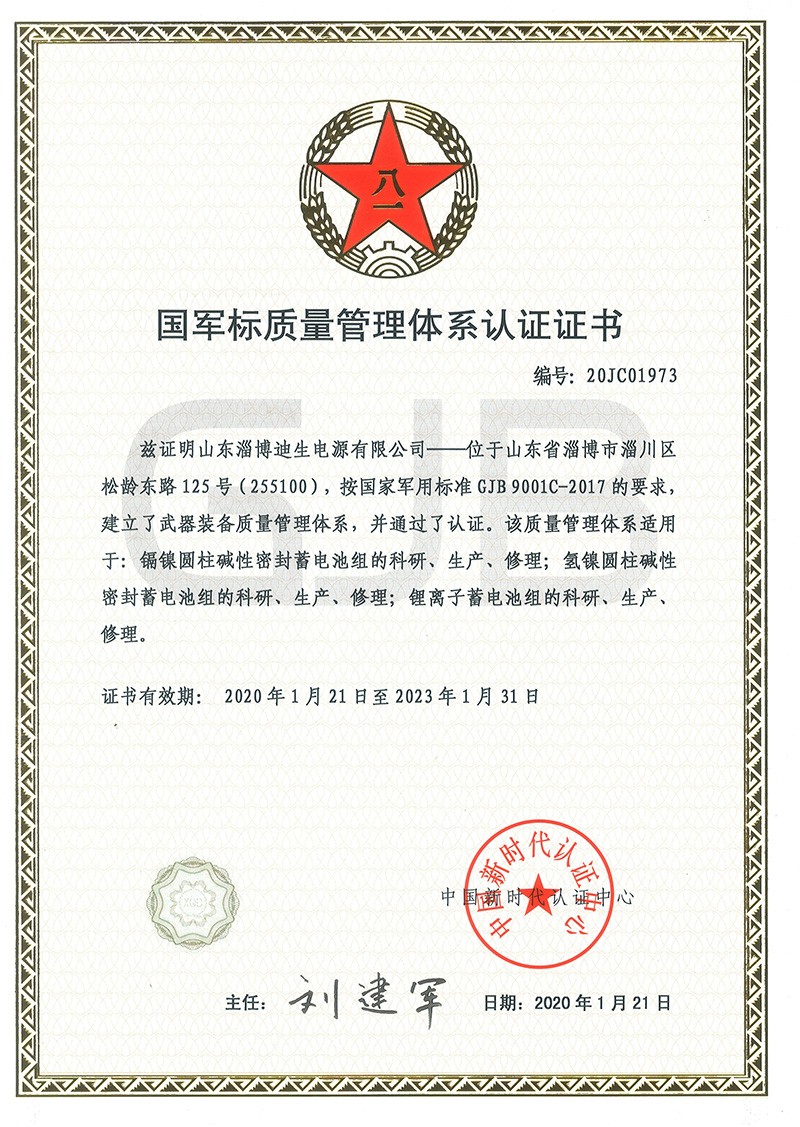 國軍標(biāo)質(zhì)量管理體系認(rèn)證證書